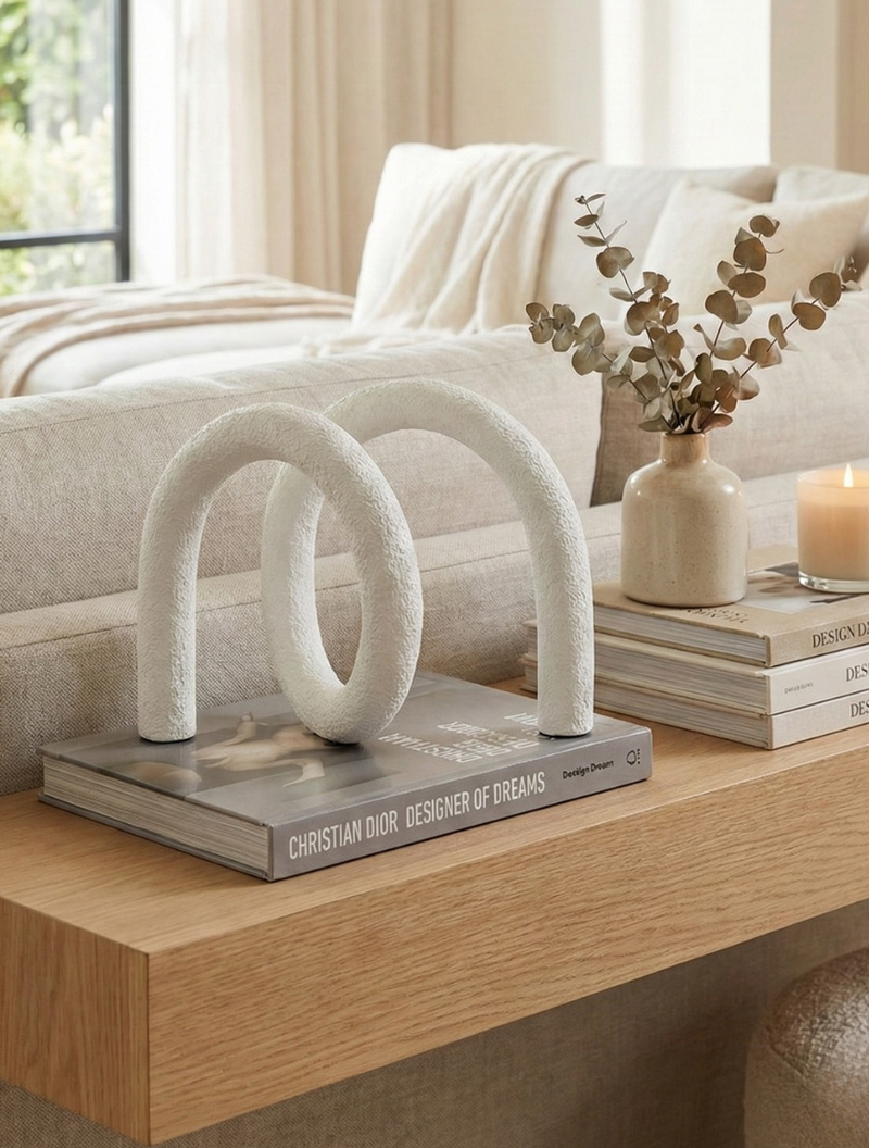 דקורציית סללום,טאץ' אמנותי מודרני הכניסו תנועה וסטייל לחלל שלכם עם אלמנט נוי פיסולי וייחודי. דקורציית הסללום מתאפיינת בקווים אורגניים זורמים ובטקסטורה לבנה מחוספסת, המעניקה לה מראה מודרני, נקי ומתוחכם. הפריט המושלם להנחה על קונסולה, מדף ספרים או שולחן קפה לשדרוג מיידי של האווירה בבית.