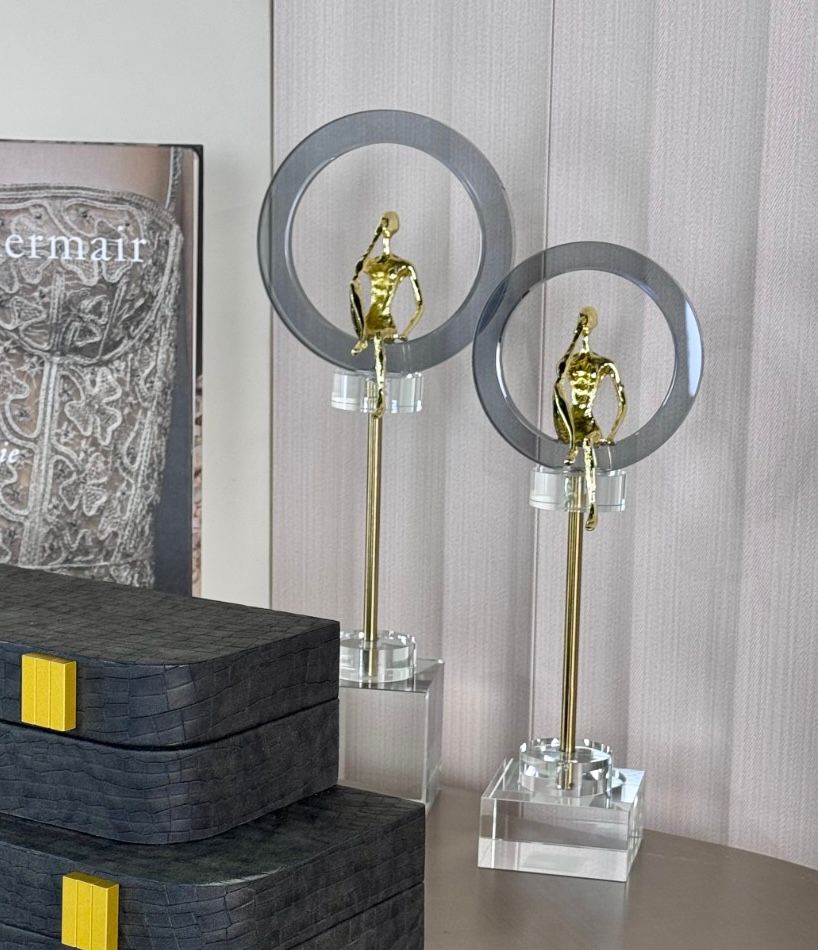 זוג דקורציות קריסטל בשילוב פסלי מתכת 43*8*20//48*8*20 לרכישה מהירה ומשלוח עד הבית