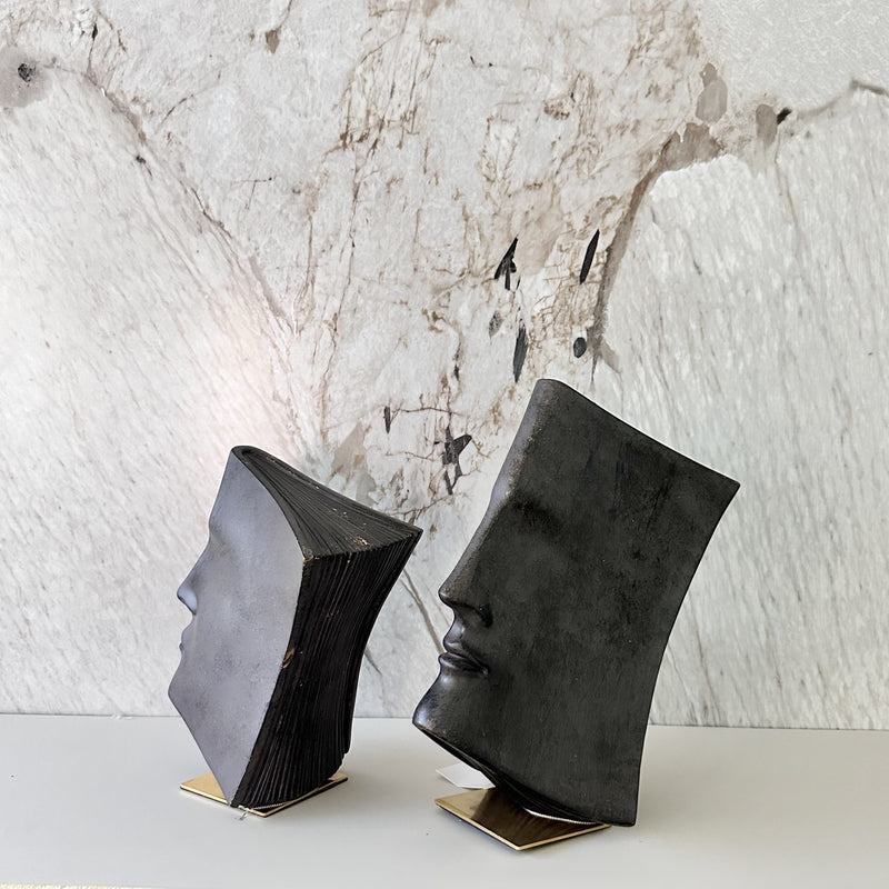 זוג פסלי פרצוף 'ספר' 20*12*28 // 34*21*14 חום
