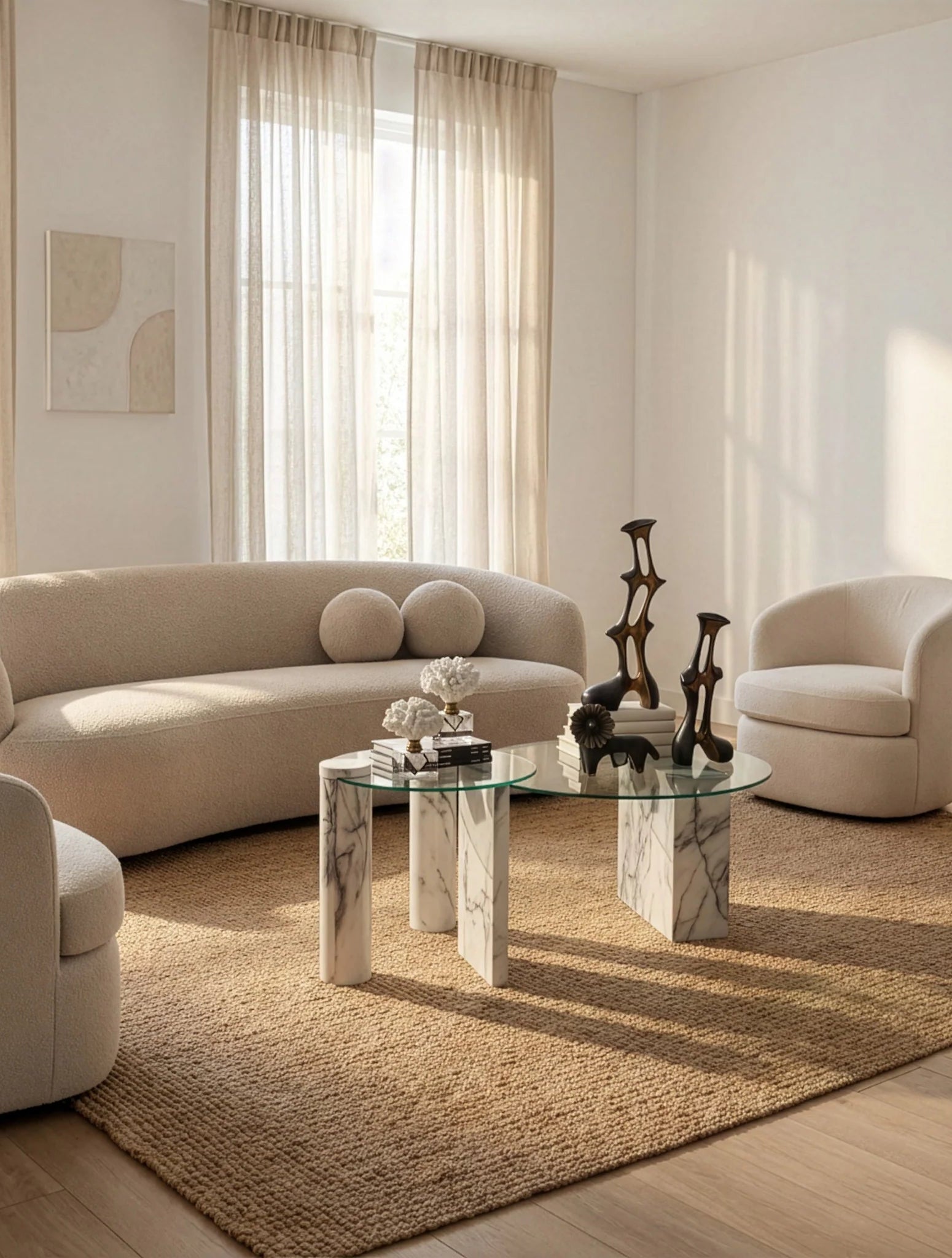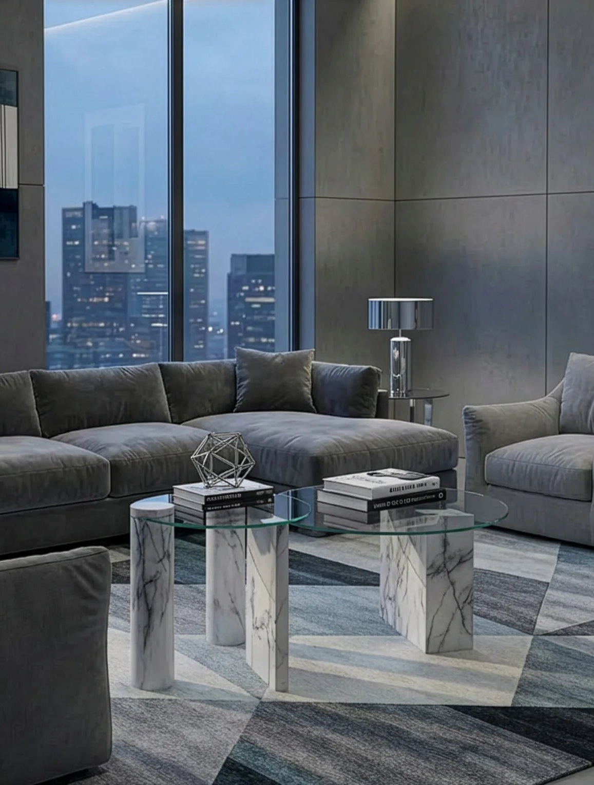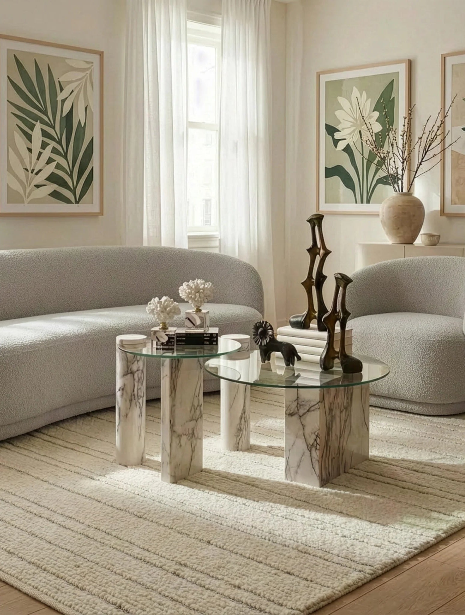 זוג שולחנות סלון דמוי שיש – אלגנטיות מודרנית במראה יוקרתי