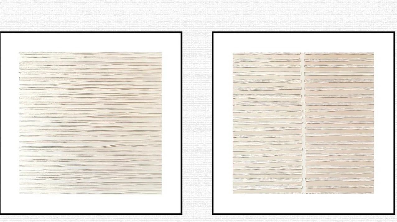 זוג תמונות קיר מינימליסטיות בקווים רכים היוצרים תחושת רוגע והרמוניה ומשדרים אלגנטיות שקטה ונקייה.