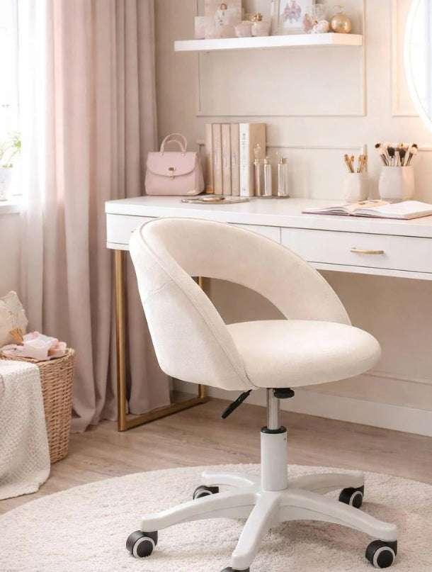כיסא אלגנטי ונוח בעיצוב נקי ומעודן, המשלב מראה יוקרתי עם פונקציונליות יומיומית. מתאים באופן מושלם לפינת לימוד, שולחן כתיבה או פינת איפור, ומשתלב בהרמוניה בחדרי ילדים, נערות וחדרי שינה מעוצבים.