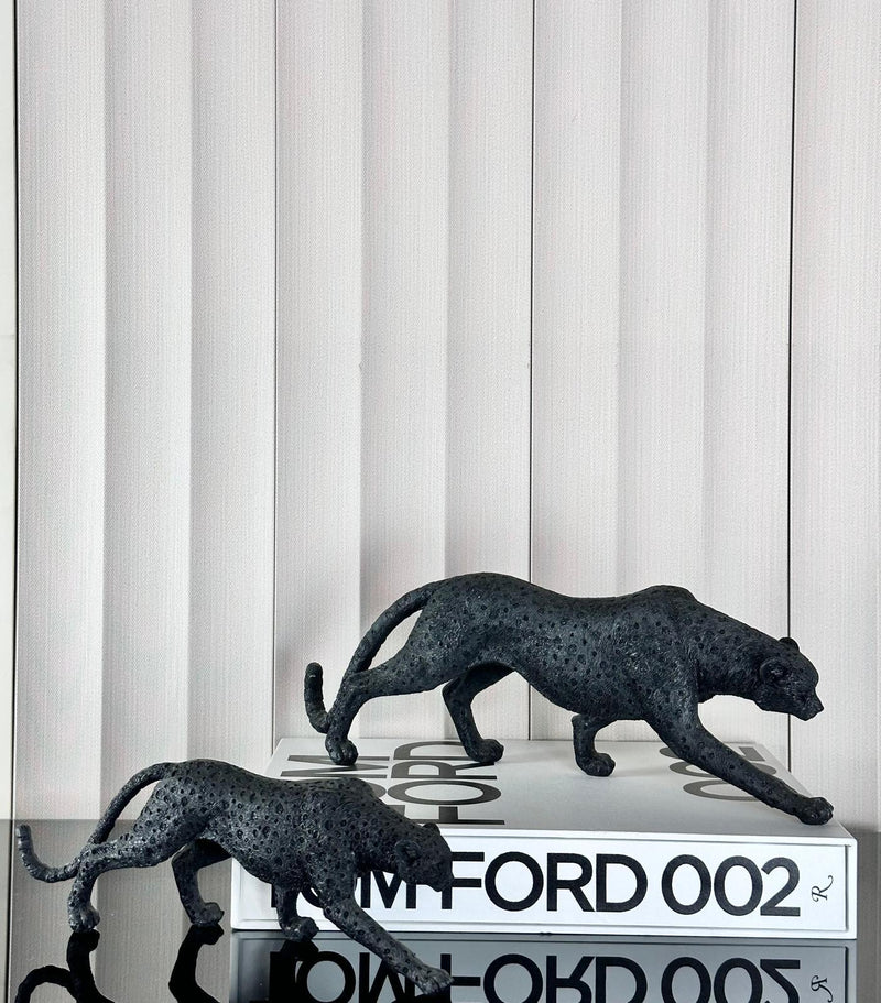 הכניסו עוצמה ואלגנטיות לחלל שלכם עם זוג פסלי צ'יטות דקורטיביות בצבע שחור מט.