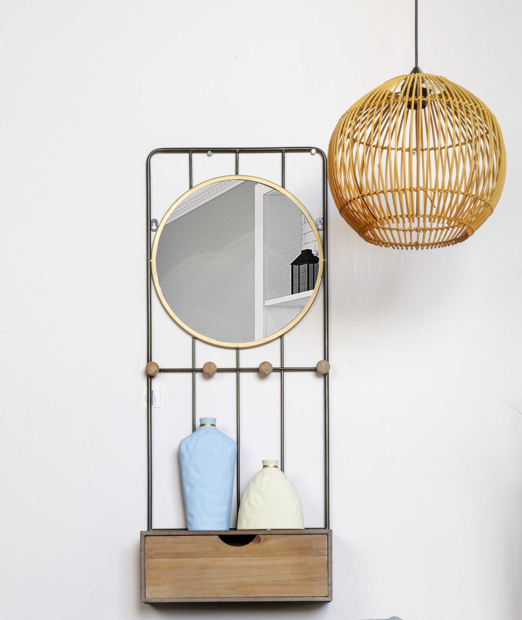 מתלה עם מגירה ומראה גובה 105 סמ רוחב 41 סמ עומק 14 סמ
