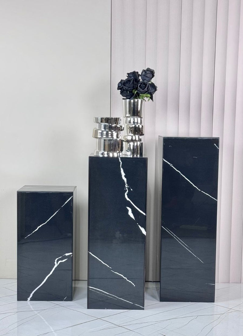 סט 3 פודיומים גרניט פורצלן בצבע שחור.