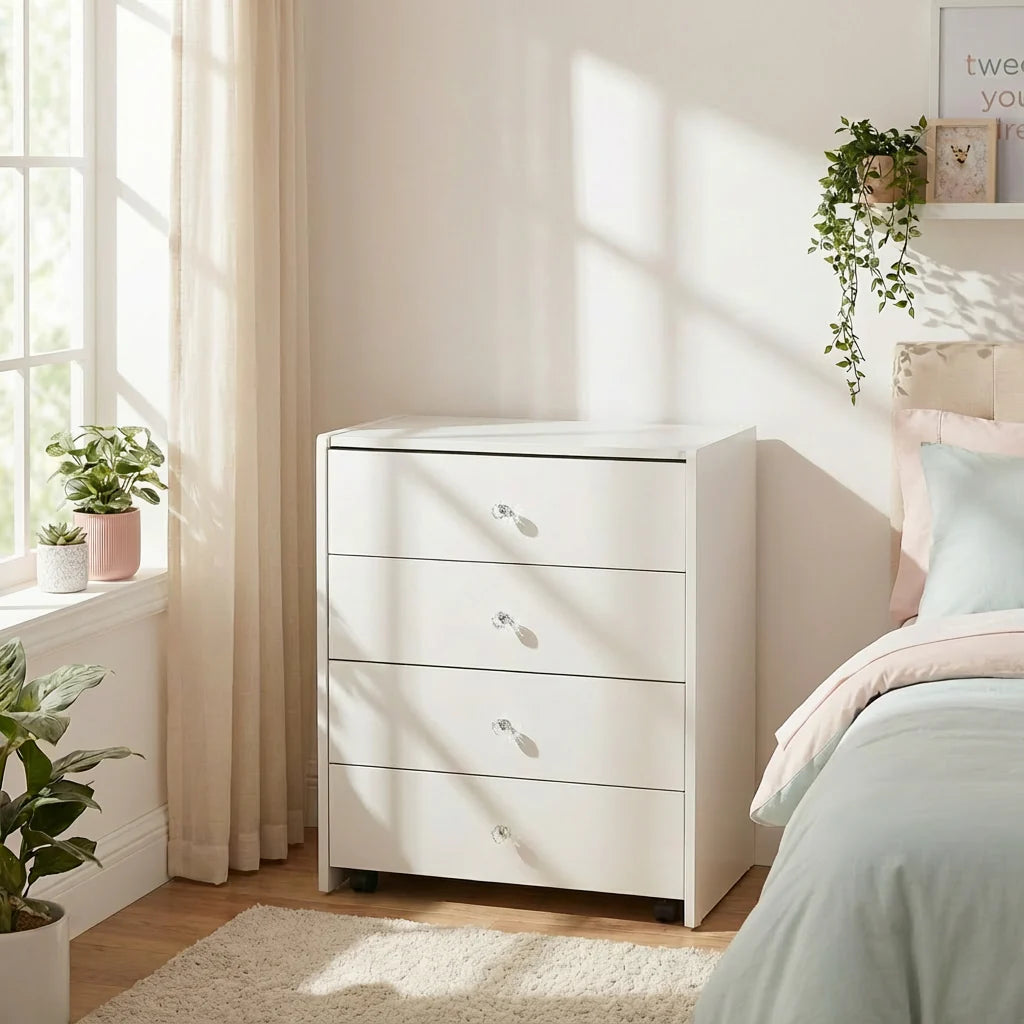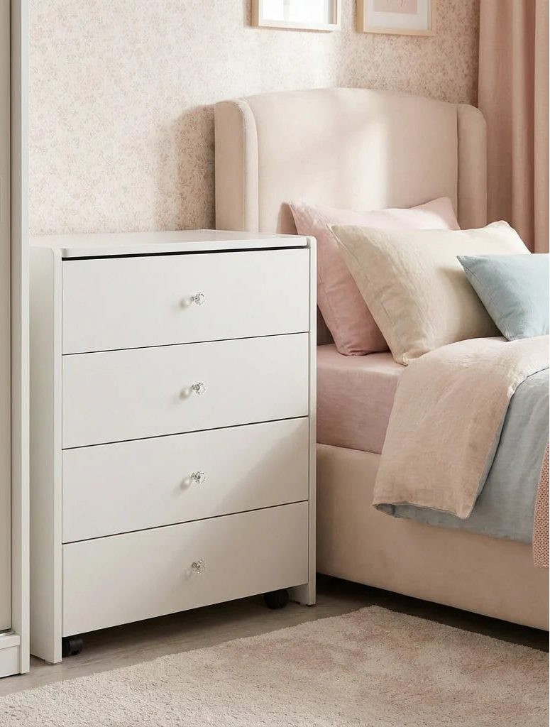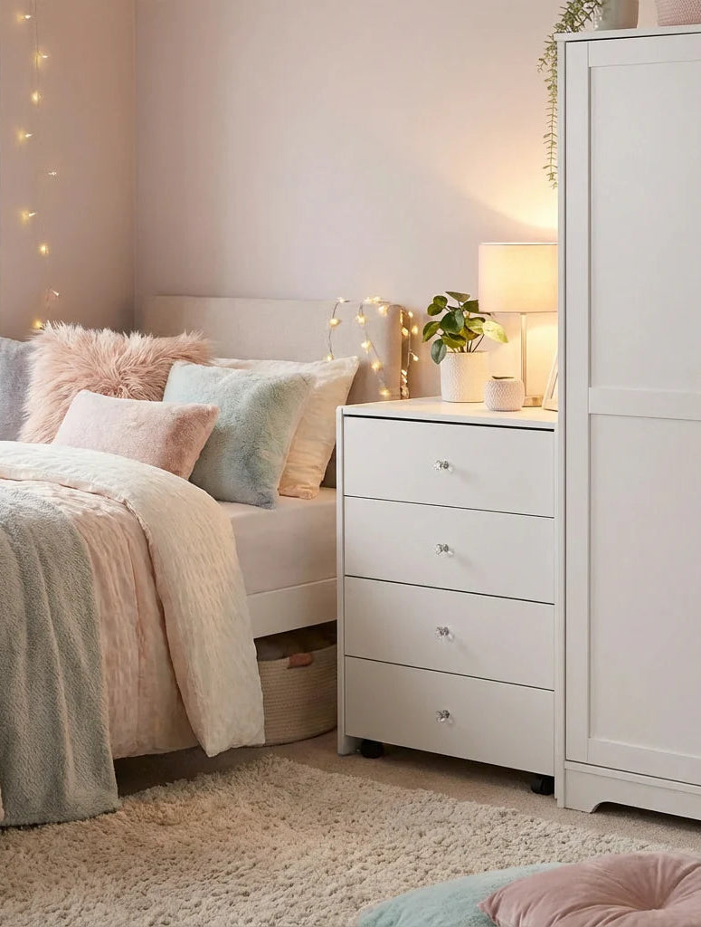 פתרון אידיאלי לחדרים קטנים – פונקציונלי, פרקטי ויפה מתאימה במיוחד לחדרי ילדות ונערות, פינות איפור קטנות או חדרי שינה בהם חשוב לשמור על סדר, אסתטיקה ונוחות שימוש.