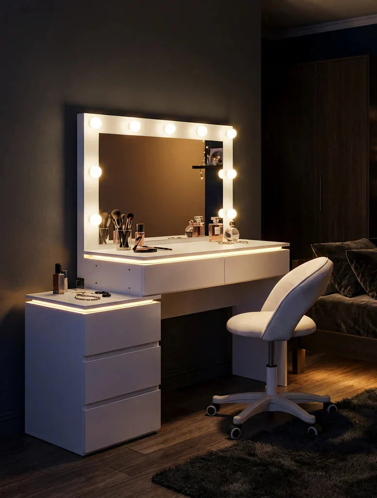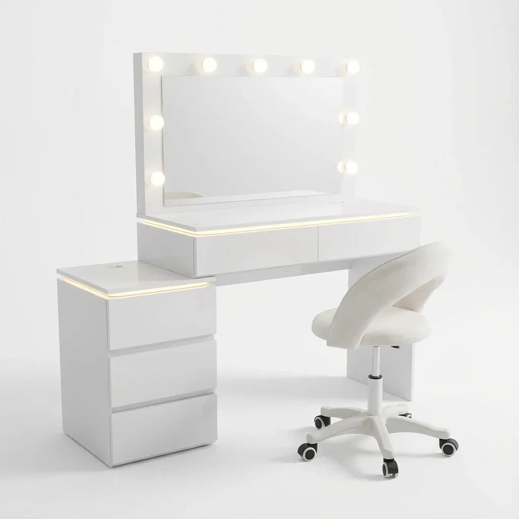 העיצוב המינימליסטי בגוון לבן משתלב בקלות עם כל סגנון חדר, ויוצר פינה אישית להתארגנות, איפור וטיפוח יומיומי.