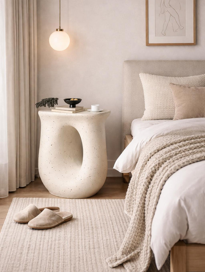 הצורניות המעוגלת והפתח המרכזי יוצרים נוכחות עיצובית שקטה אך מרשימה, כזו שמשתלבת בהרמוניה בסלון, בחדר שינה, במרפסת מקורה או בפינת ישיבה מעוצבת.