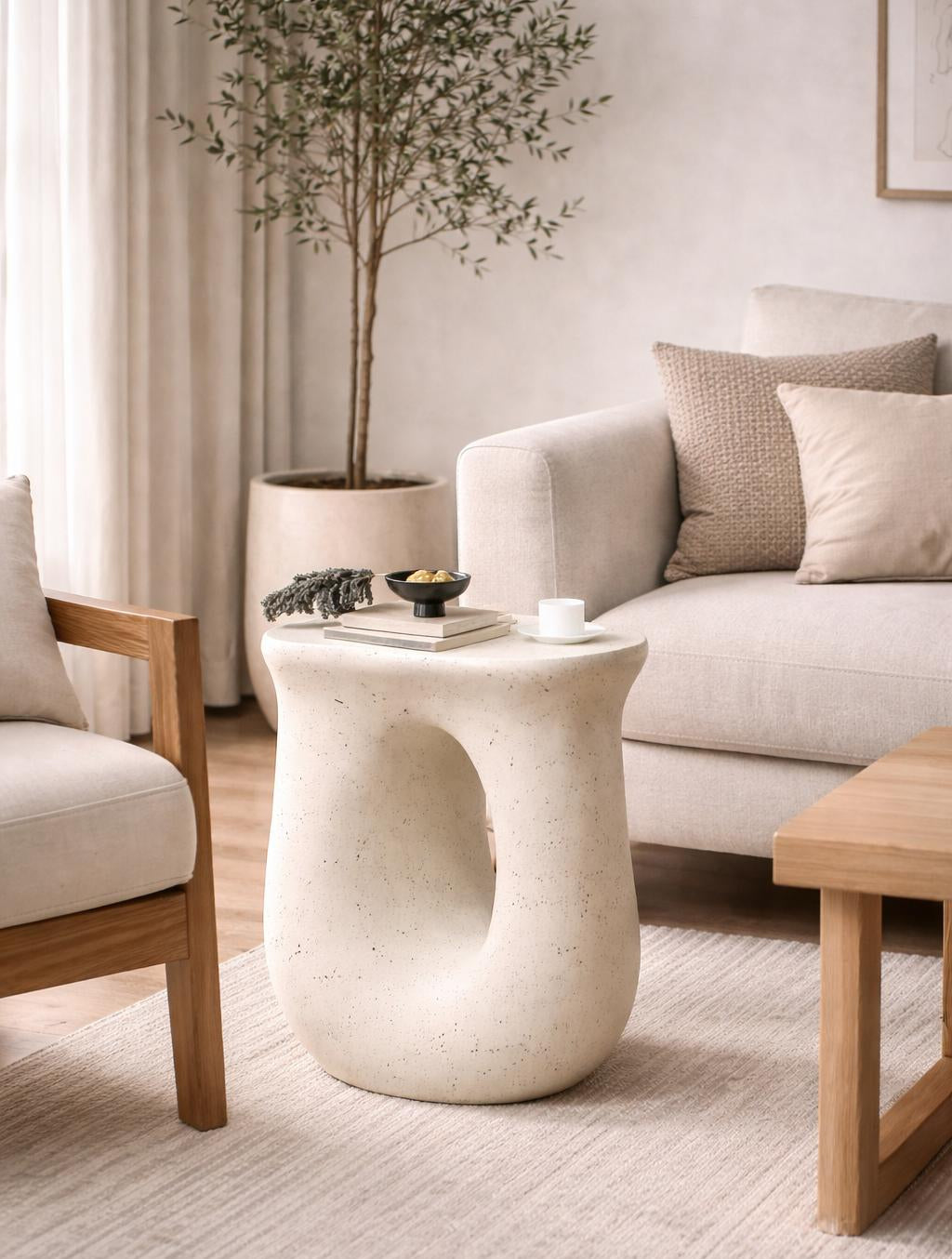 פריט פיסולי בעיצוב רך ומעודכן, עשוי חימר סיבי איכותי בגימור טבעי ונעים למגע.