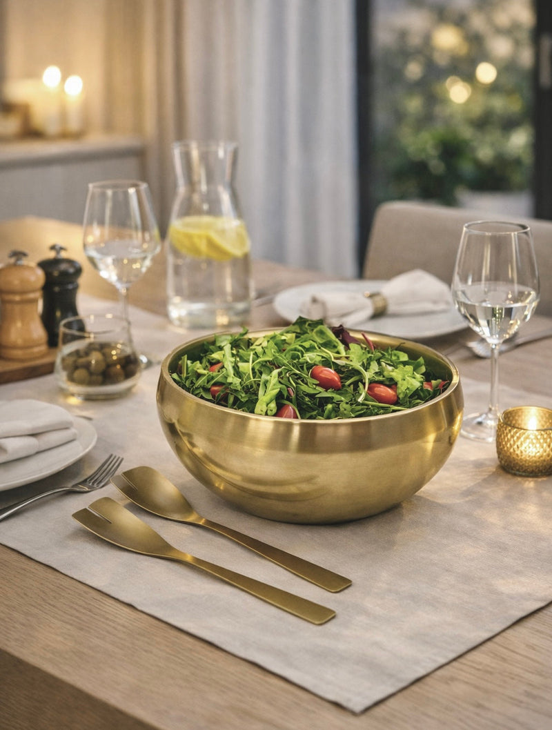 קערת הגשה מנירוסטה מוברשת בעיצוב אלגנטי ועשיר, המשלבת מראה יוקרתי עם פרקטיות יומיומית. מושלמת כקערת סלט מנירוסטה, כקערת אירוח לשולחן חג וכפריט מרכזי בכל סט כלי הגשה מעוצבים.