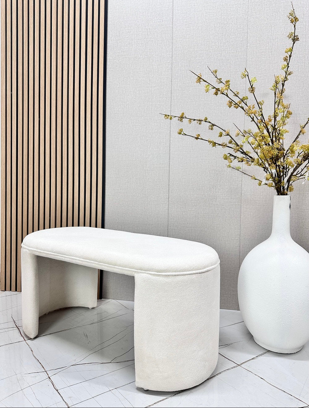 המבנה האדריכלי המעוגל יוצר פריט שהוא גם פונקציונלי וגם דקורטיבי – הדום מעוצב שיכול לשמש כספסל לחדר שינה, כהדום ישיבה בקצה מיטה, כהדום לסלון או כתוספת מושלמת לפינת איפור יוקרתית. הריפוד האיכותי והקימורים הרכים הופכים אותו לפריט נוח במיוחד, לצד מראה על-זמני ומוקפד.
