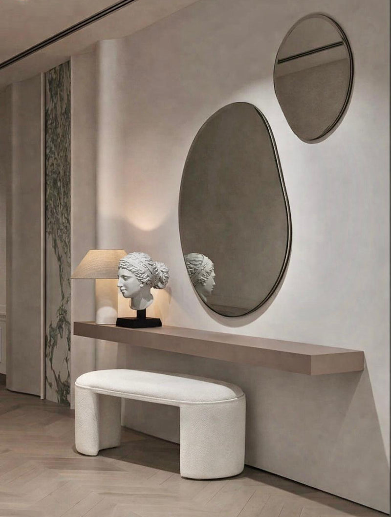 הדום מרופד בקווים מעוגלים ונקיים, המשלב נוחות מרבית עם נוכחות עיצובית שקטה ואלגנטית. עיצוב מינימליסטי בגוון בהיר ורך, המעניק תחושת רוגע ויוקרה ומשתלב באופן טבעי בחללי מגורים מודרניים, חדרי שינה, סוויטות הורים ופינות ישיבה מעוצבות.