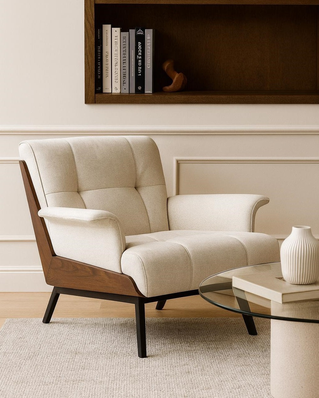 כורסא בעיצוב קלאסי ויוקרתי בשילוב גב מעץ טיק.
