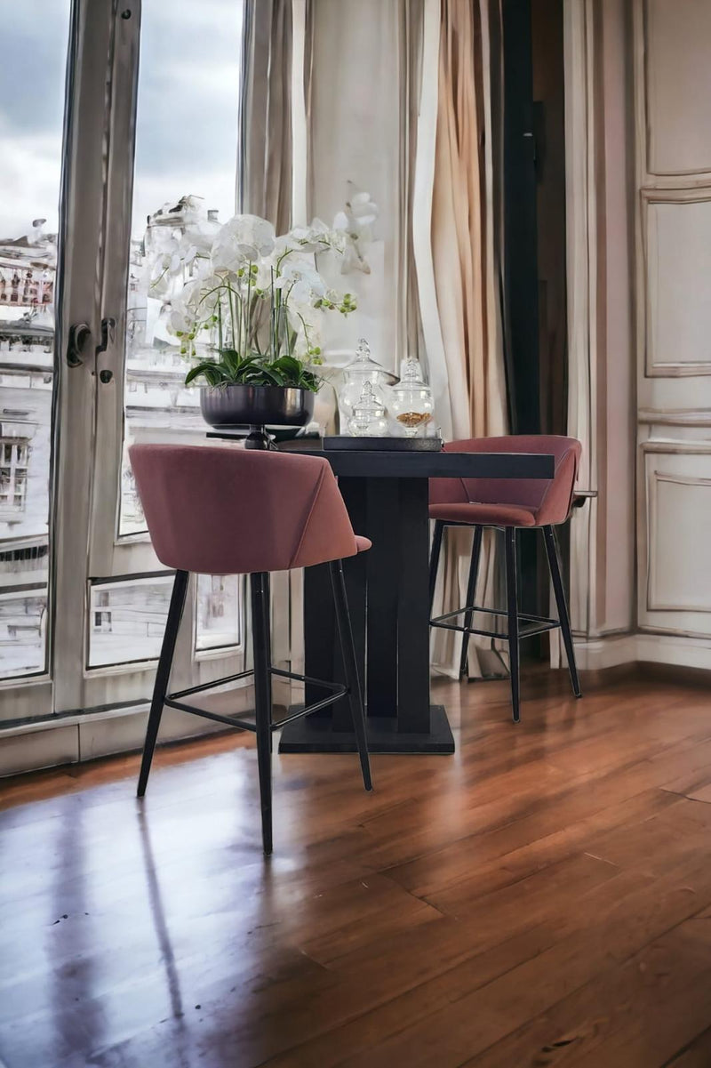 חומרים: מתכת בגימור שחור מט, ריפוד בד קטיפה איכותי וקל לניקוי.