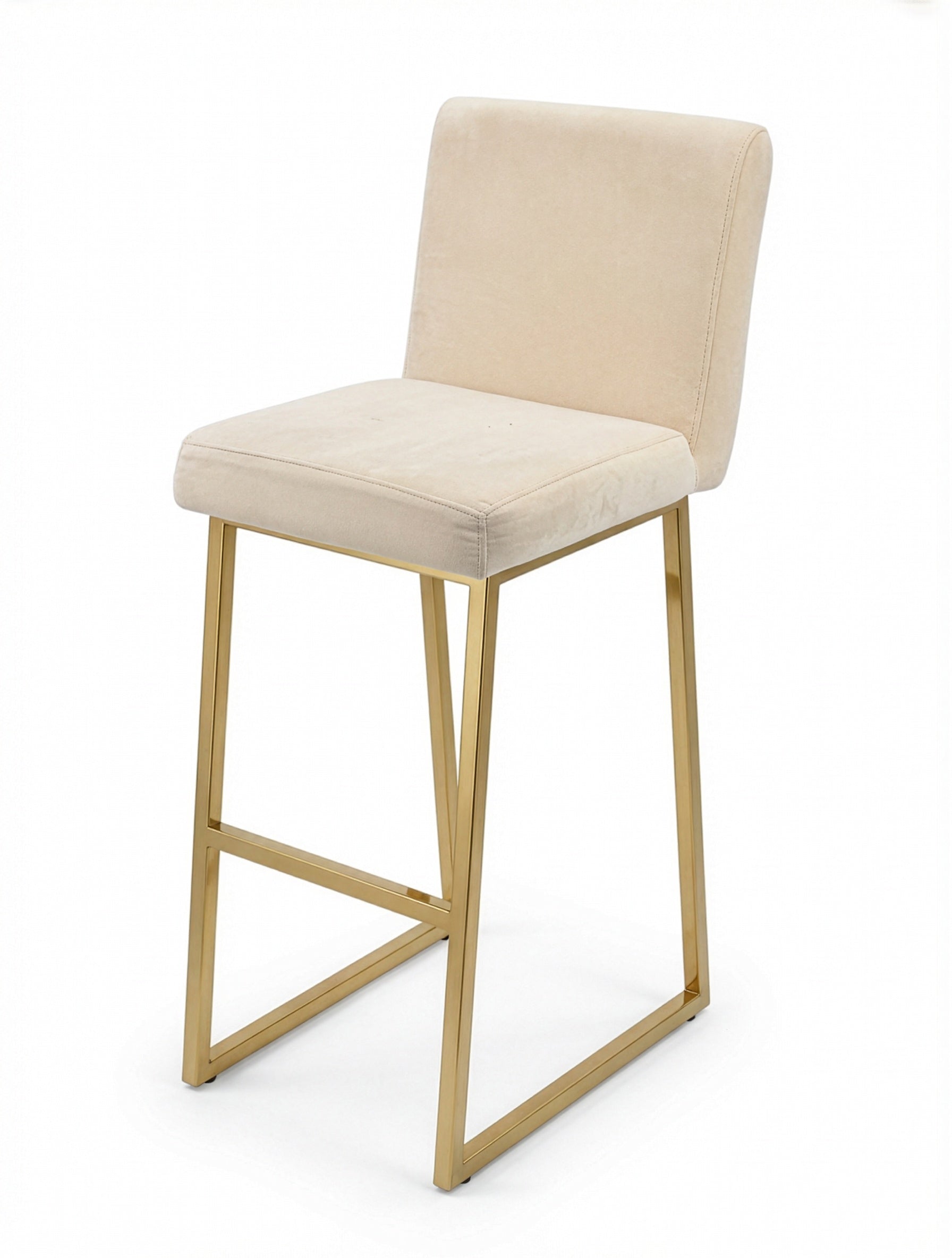כיסא בר STAR - ריפוד קטיפה שמנת עם בסיס מתכת אל-חלד בצבע זהב