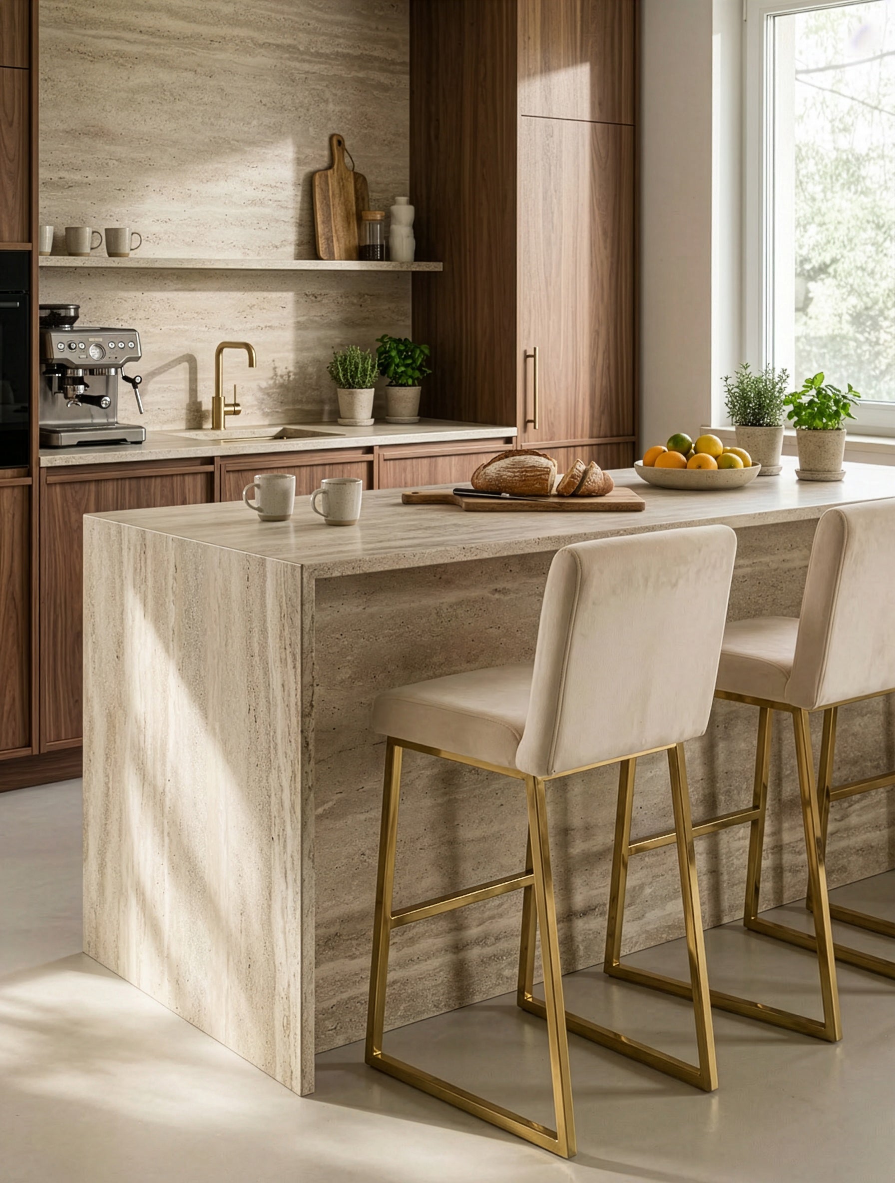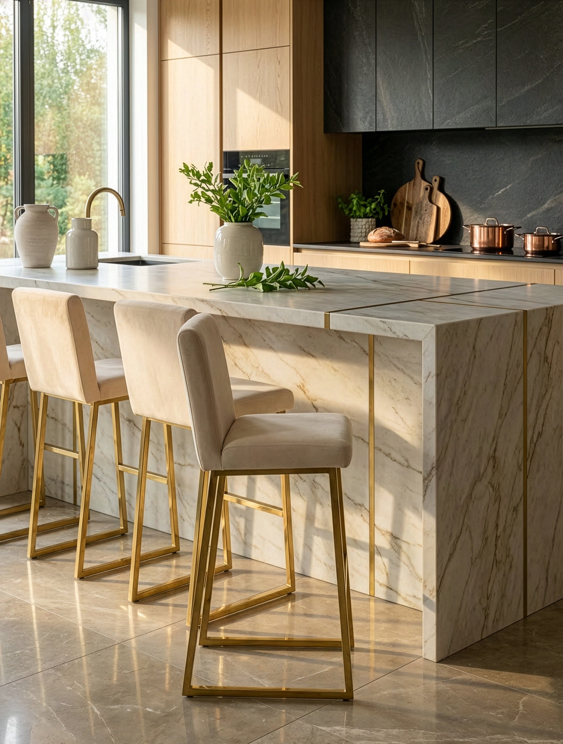 כיסא הבר STAR משלב מראה יוקרתי ונקי עם נוחות יומיומית: ריפוד קטיפה רך ומלטף בצבע שמנת, יחד עם בסיס מתכת אל-חלד בגימור זהב אלגנטי שמכניס סטייל מודרני לכל מטבח. זהו כיסא בר מעוצב שמייצר נוכחות מדויקת סביב האי ונראה מושלם גם בסט של כמה יחידות.