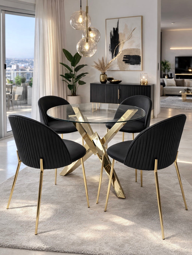 המושב הרחב והנוח מרופד בריפוד איכותי ונעים למגע, כך שכל ארוחה הופכת לחוויה מפנקת. רגלי מתכת בצבע זהב מוסיפות יציבות ועמידות, לצד מראה אלגנטי שמתאים לכל שולחן אוכל ולכל סגנון עיצובי