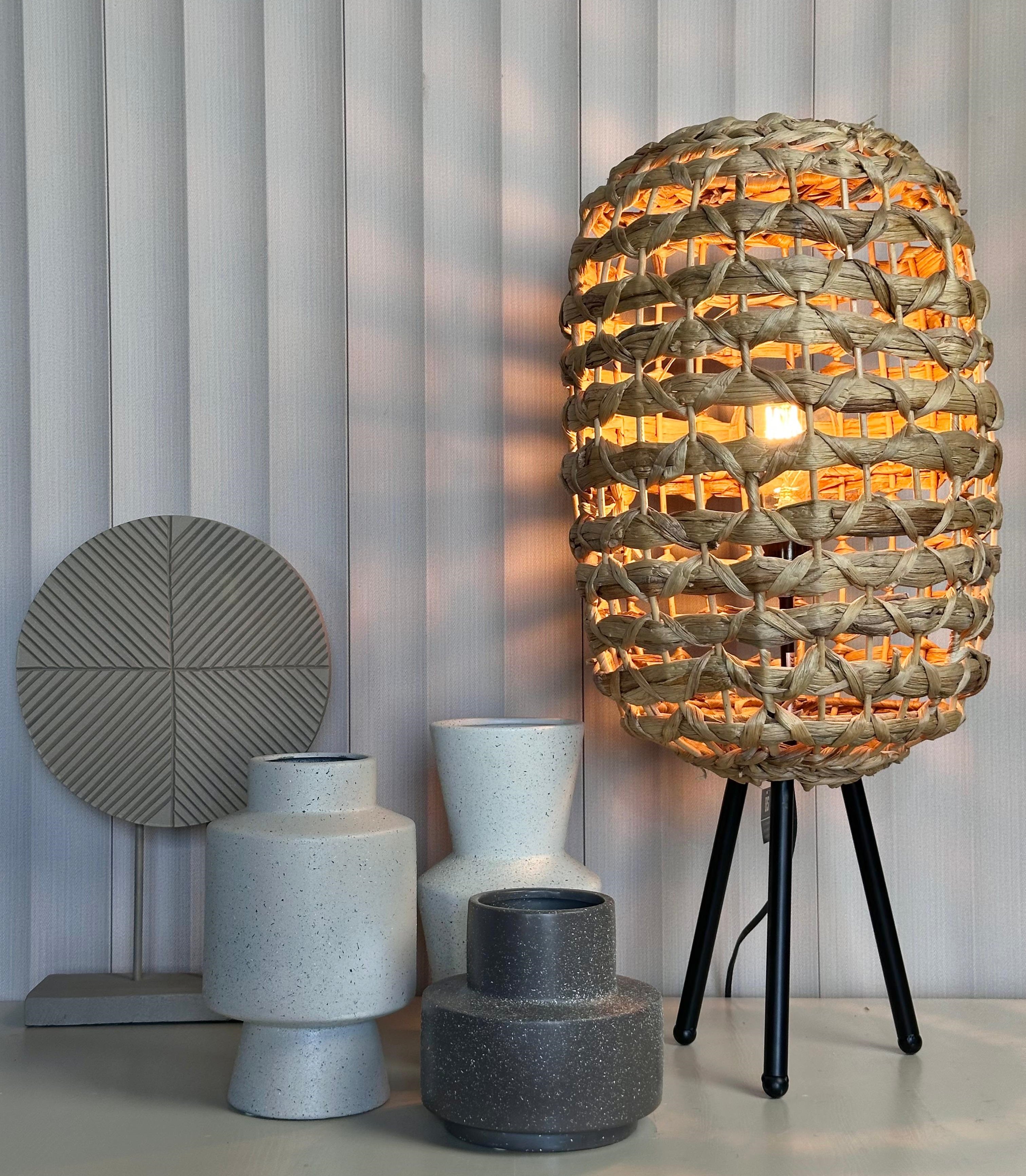 מנורת קש רצפתית, רגלי טריפוד מתכת בשחור