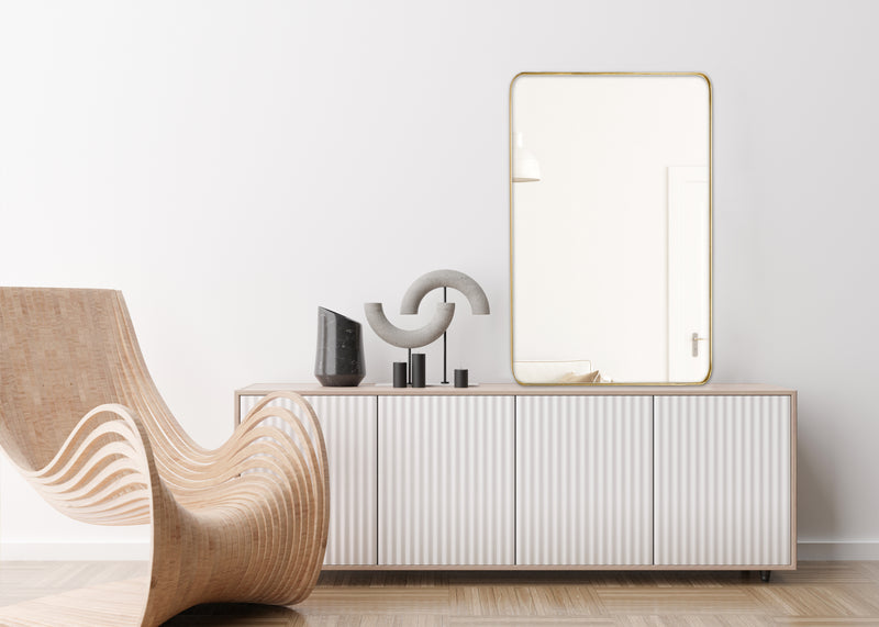 מראה מעוצבת במסגרת דקה ועדינה מלבנית