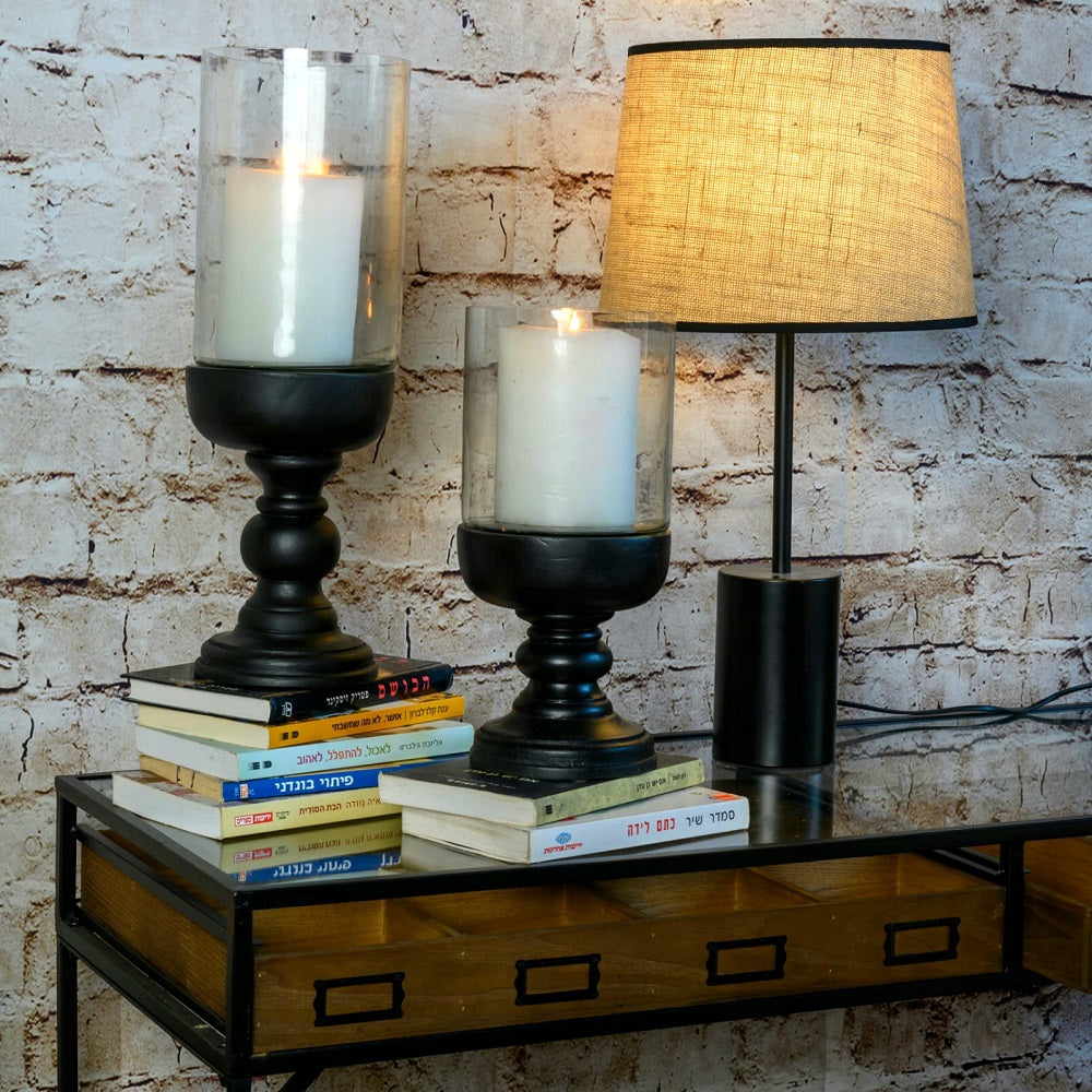 פמוט/ הוריקן שולחני עץ מנגו שחור