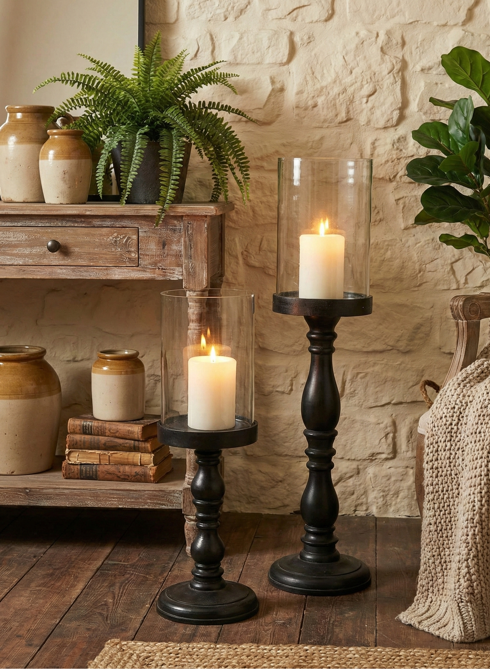 פמוט/הוריקן ריצפתי עץ מנגו שחור