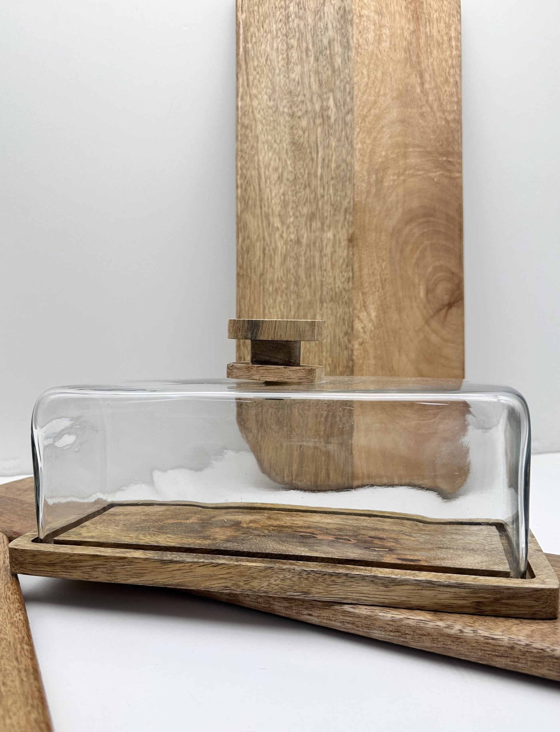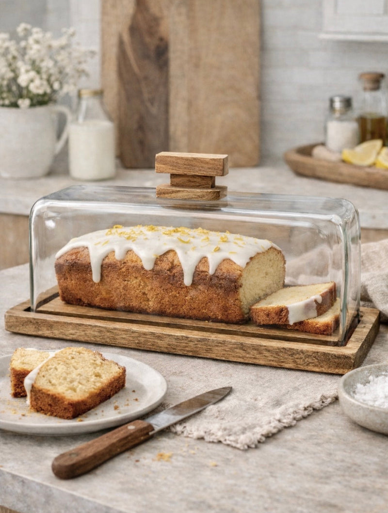 אינגליש קייק זכוכית ועץ הוא כלי הגשה מעוצב לעוגות ומאפים, שמכניס תחושת אירוח יוקרתי כבר מהמבט הראשון. מכסה הזכוכית השקוף שומר על טריות המאפה, בעוד בסיס העץ הטבעי מוסיף חמימות ונוכחות אלגנטית לשולחן.