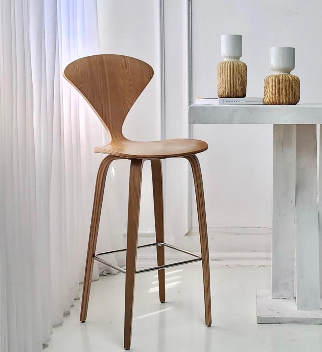 כסא בר לאי מטבח, עשוי עץ פורניר אלון בגוון טבעי ובעיצוב קלאסי ויוקרתי LEO