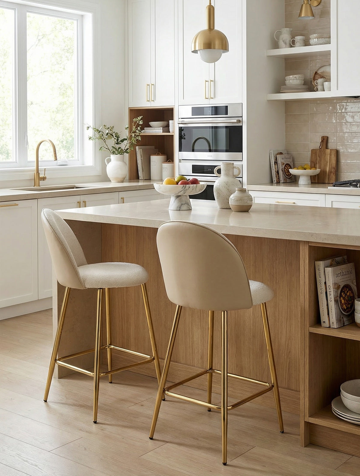 כיסא הבר LUNA הוא הבחירה המושלמת למי שמחפשים כיסא בר מעוצב שיראה נקי, קליל ומואר סביב האי. בגוון הזה הוא מגיע במראה בז'-עם נגיעות חמימות עם רגלי מתכת בגימור זהב, שמכניסות טאץ’ יוקרתי ועדין למטבח - מושלם לשילוב עם עץ טבעי, שיש בהיר וגווני אבן.