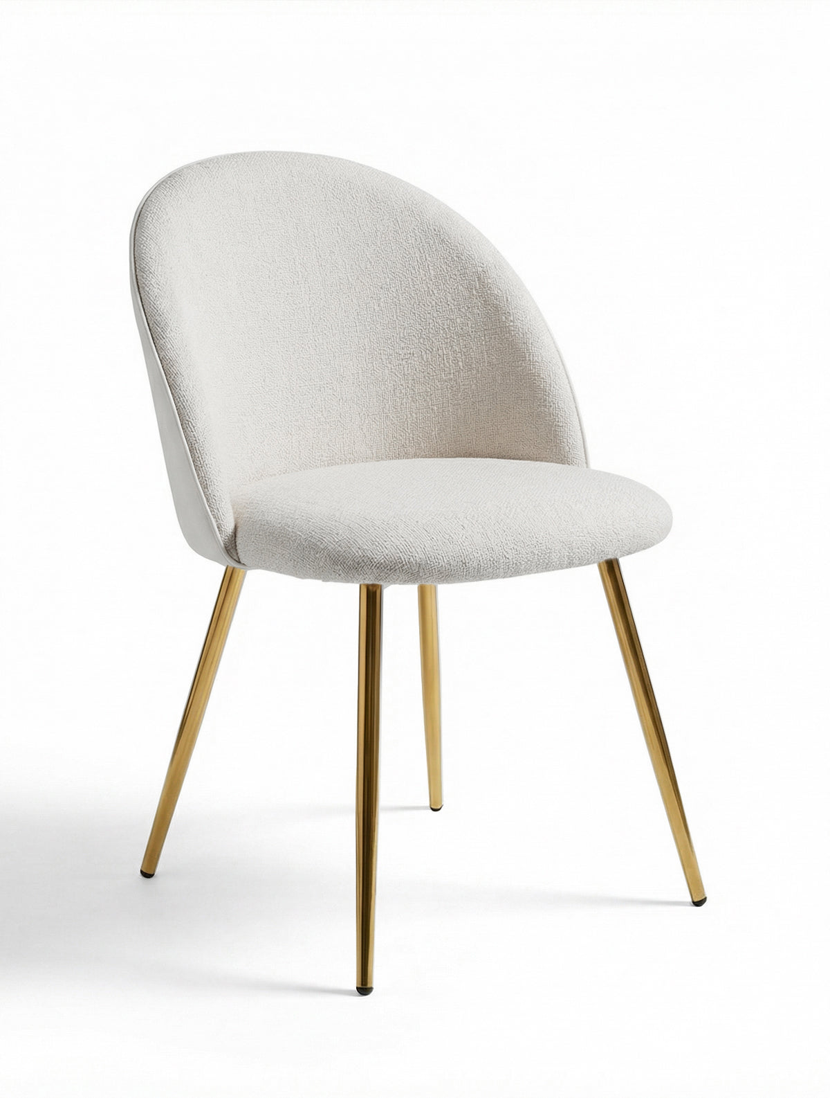 כיסא האוכל LUNA הוא הבחירה המושלמת למי שמחפשים כיסא אוכל מעוצב שמכניס אור, רכות ואלגנטיות לפינת האוכל. הגוון הלבן של גב הכיסא בדמוי עור, עם טקסטורת בד עדינה של המושב עצמו, יוצרים מראה נקי ומעודן, ורגלי המתכת בגימור זהב מוסיפות טאץ’ יוקרתי שמרים כל שולחן - משיש ועד עץ טבעי. זהו כיסא לפינת אוכל שמצטלם מושלם ונראה נפלא כסט סביב שולחן אירוח.