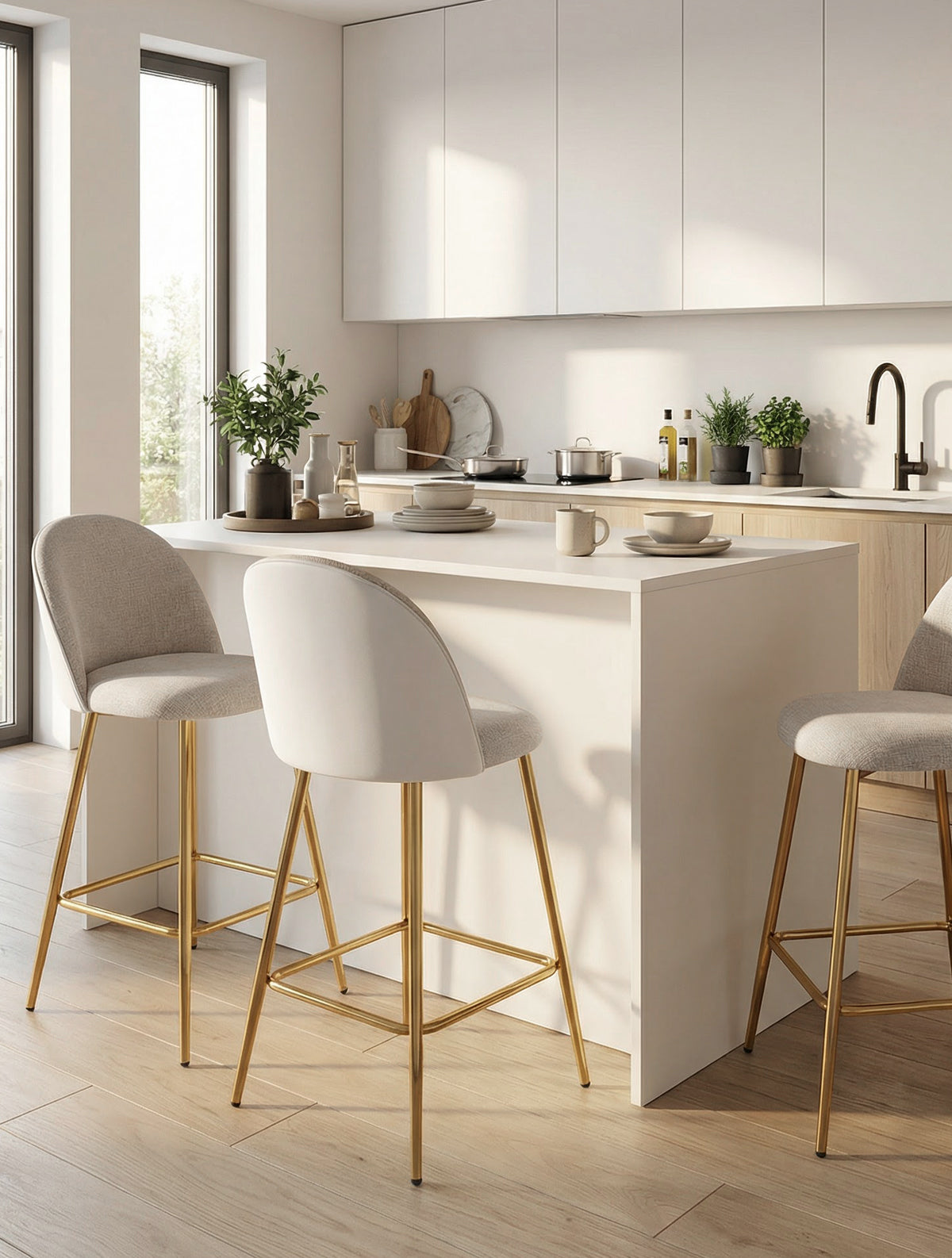LUNA הוא כיסא בר מרופד ונוח - המושב המרופד והגב המעוגל יוצרים נוחות נעימה לישיבה יומיומית, והבסיס המתכתי בצבע זהב, שומר על מראה יוקרתי שמתחבר נהדר למטבחים בהירים ומודרניים.