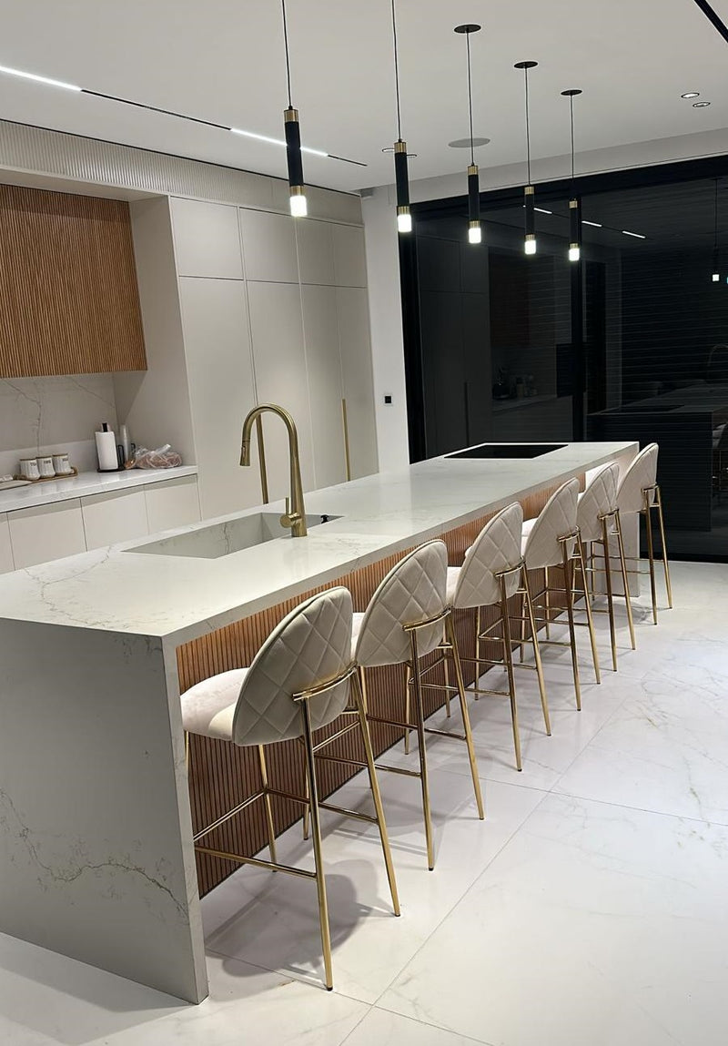כיסא בר המעוצב בקו נקי ומעודן, המשלב בין יוקרה מודרנית לנוחות מרבית.